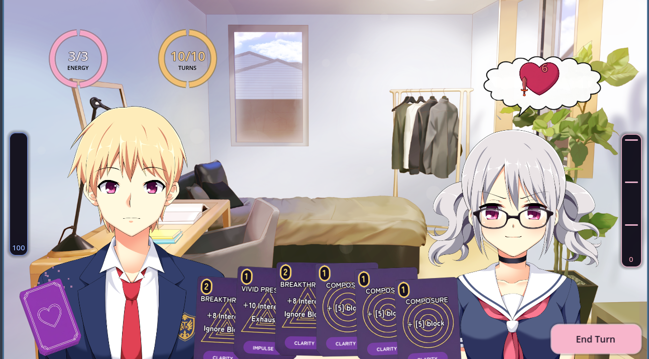 Early prototype of a card-based roguelite with visual novel elements. You play as Takeshi — a lonely Japanese high schooler with zero friends. Card "battles" represent attempts to connect with people emotionally.